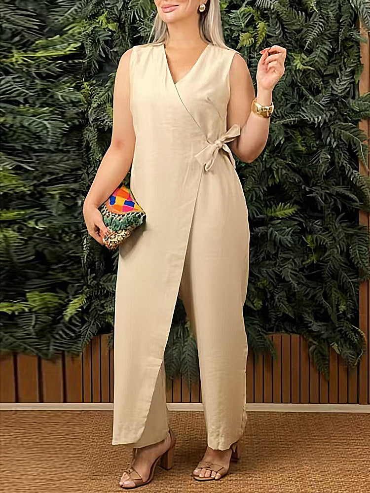 Zeyria Kruvaze Bağlamalı Şık Tulum, gardırobuna hem zarafet hem de rahatlık katmak isteyen kadınlar için tasarlanmıştır. Kruvaze göğüs detayı, bel kısmındaki şık bağlama ve dökümlü paça formu vücut hatlarını nazikçe sararak modern bir görünüm oluşturur.