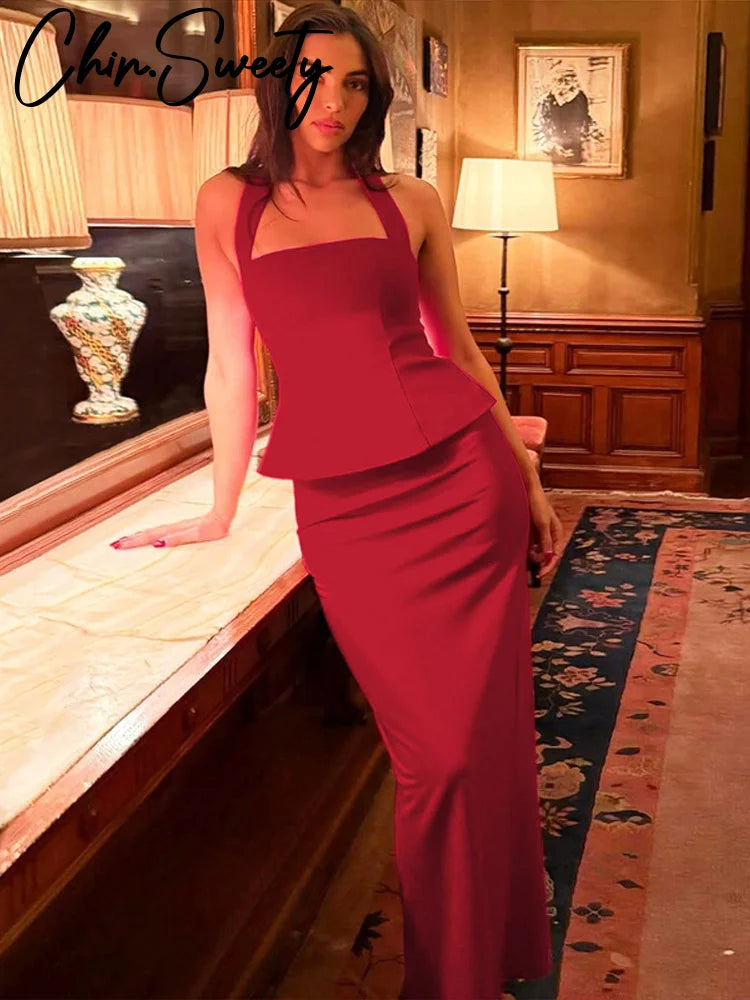 Elegant Halter Vest İkili Gece Elbisesi