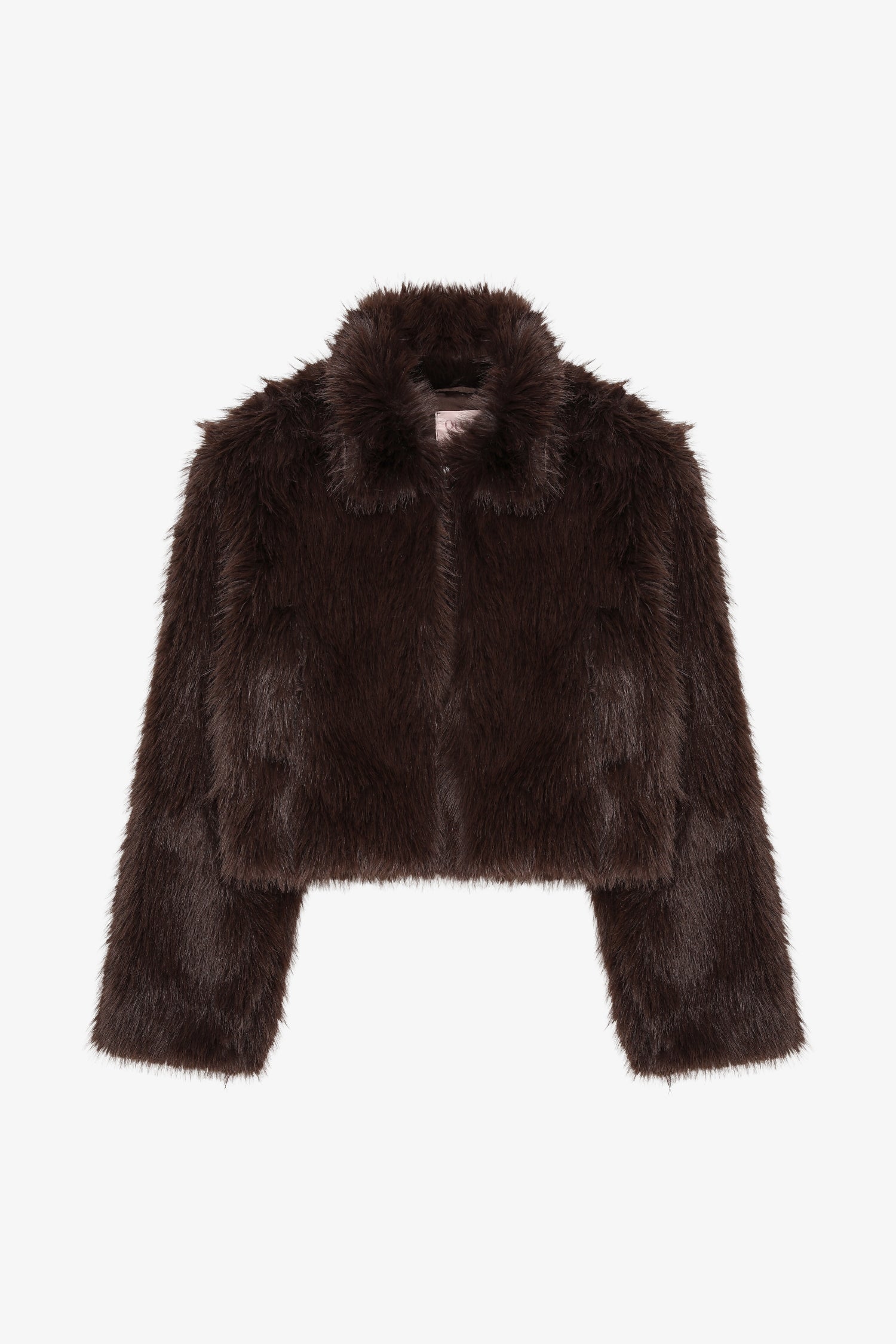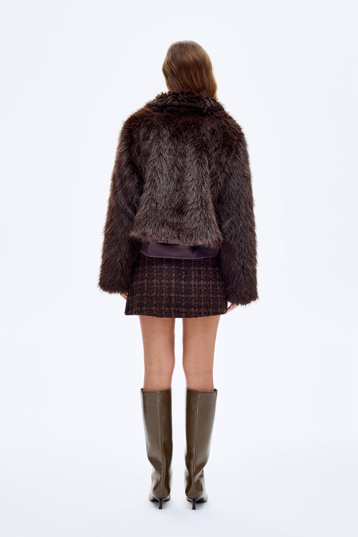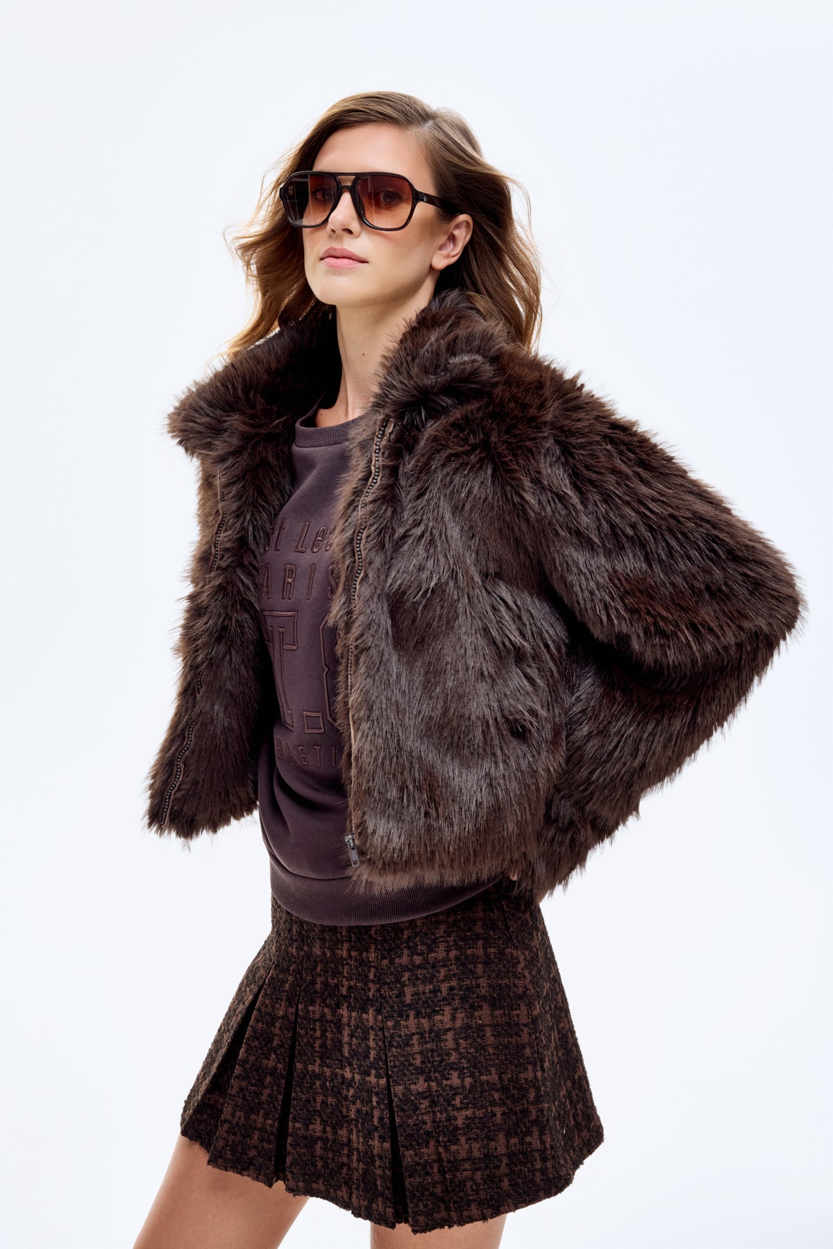 Fermuarlı Kısa Kürk Ceket Kahverengi