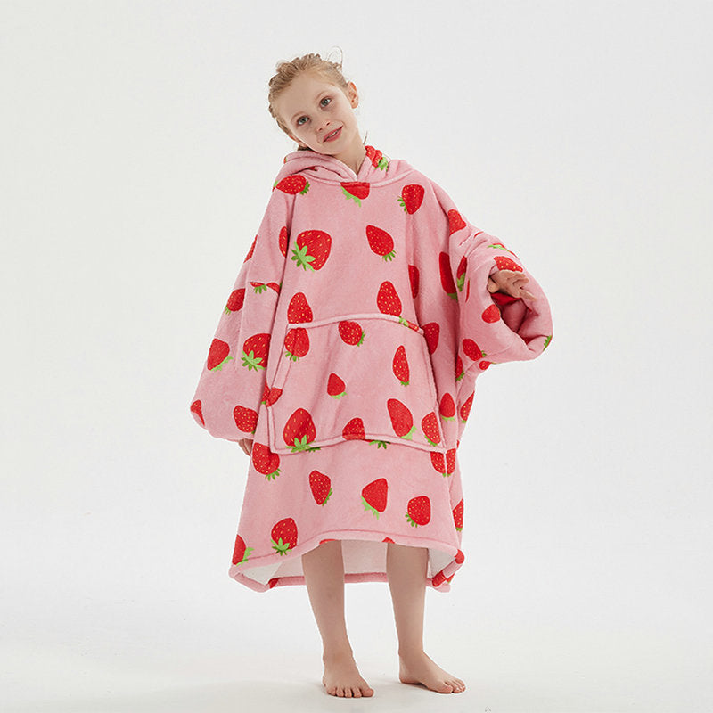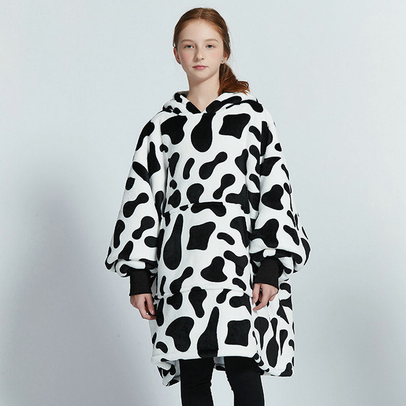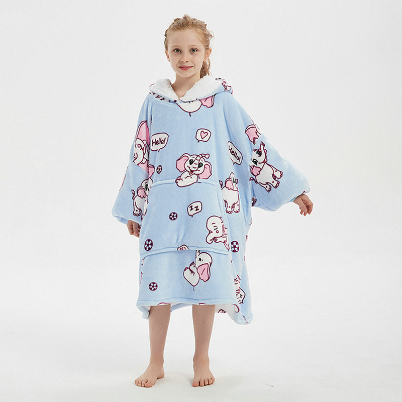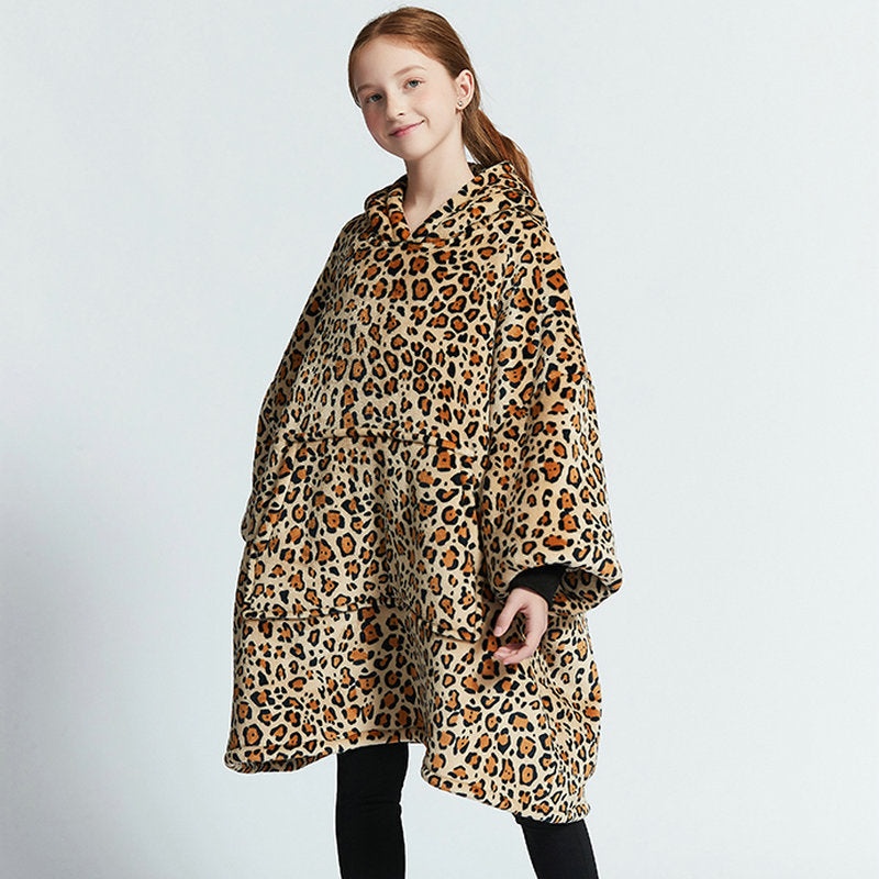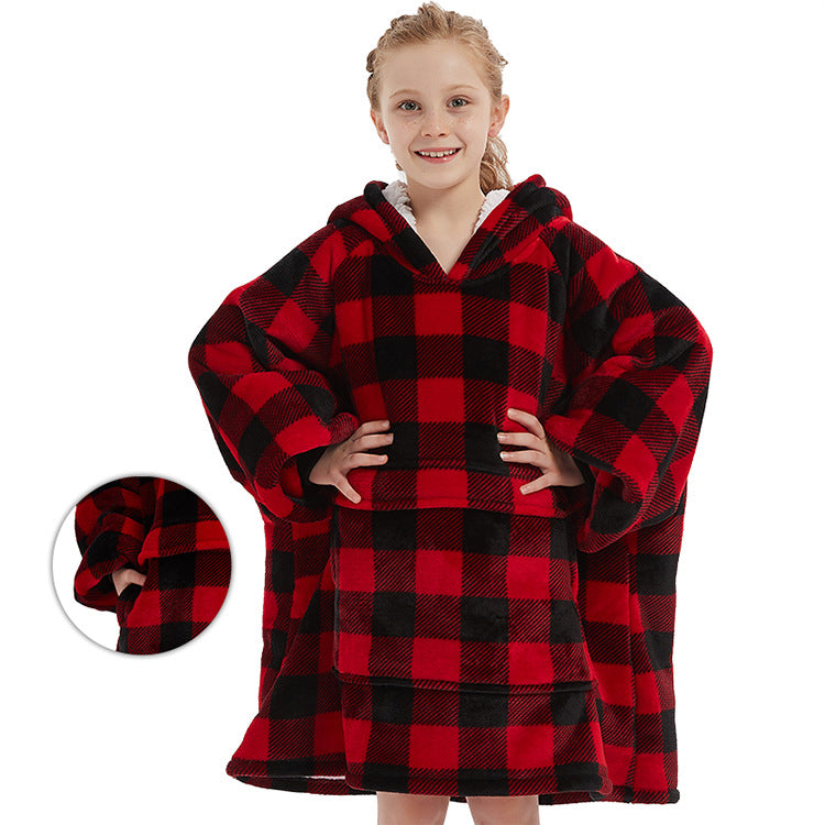 Genç çocuklar için özel olarak tasarlanmış bu flanel kapüşonlu battaniye, hem sıcak tutar hem de hareket özgürlüğü sağlar.