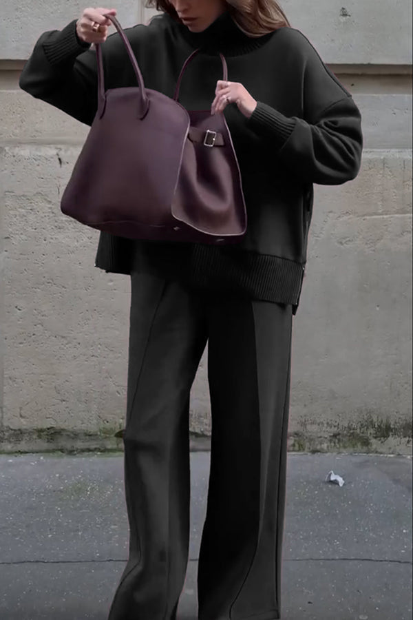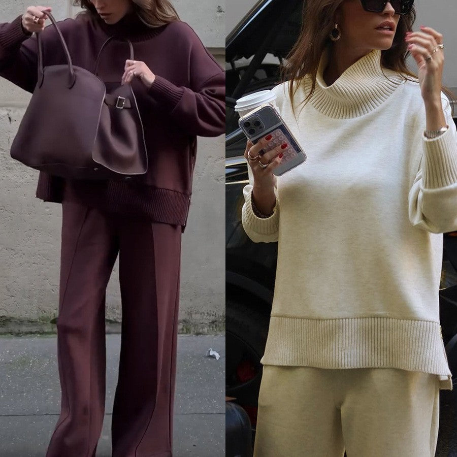 Rahat kesimi ve yumuşak dokusuyla öne çıkan bu boğazlı takım, günlük şıklığı zahmetsiz hale getirir. Yan fermuar detayı ve bol paça pantolonu ile konforlu ve modern bir göxrünüm sunar.