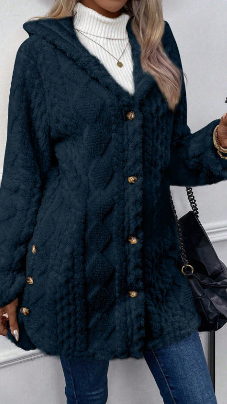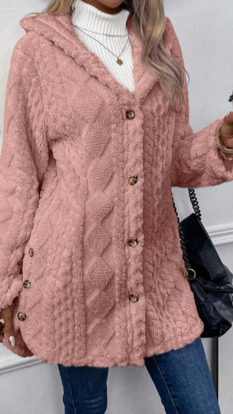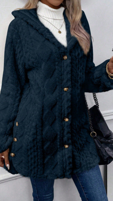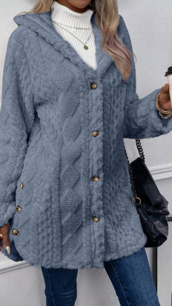 Kapüşon detayı sayesinde rüzgarlı günlerde ekstra koruma sağlarken, yanlardaki dekoratif düğmeler ürüne modern bir görünüm katar.