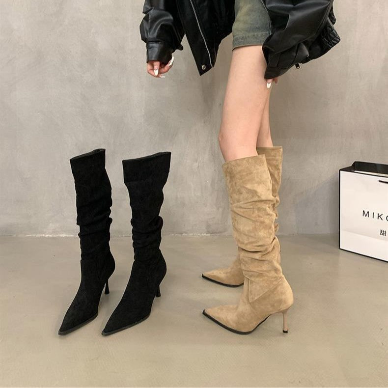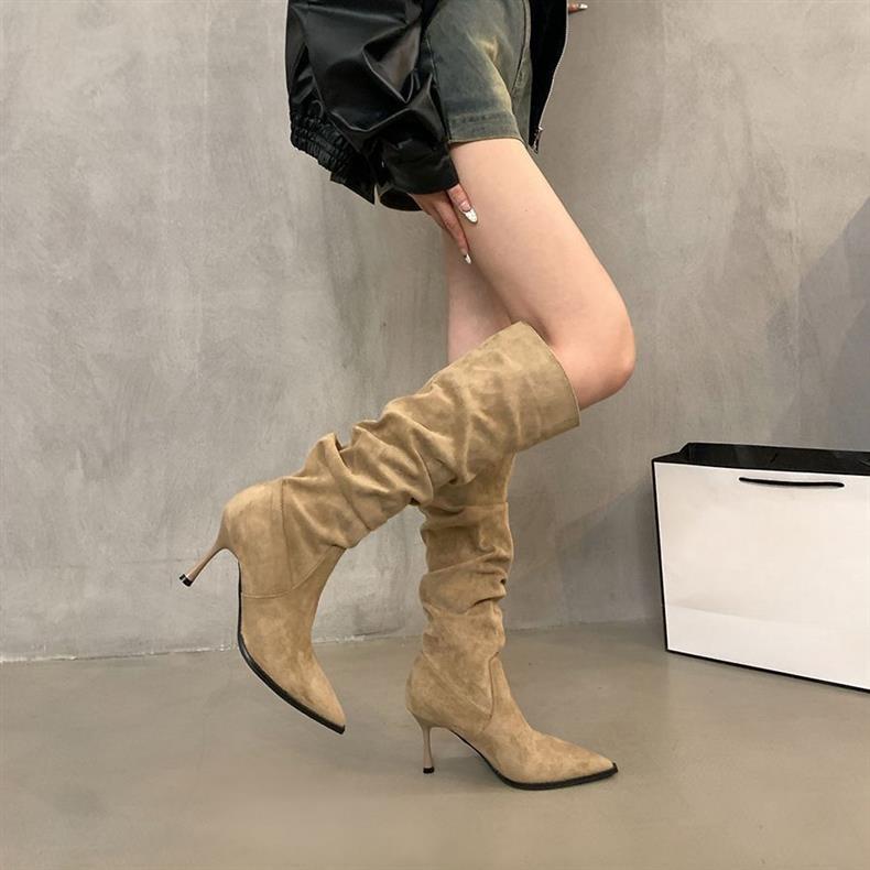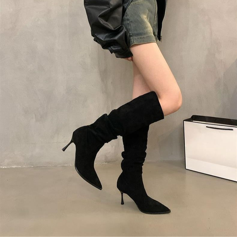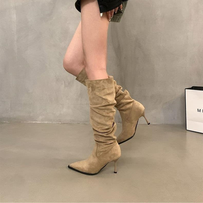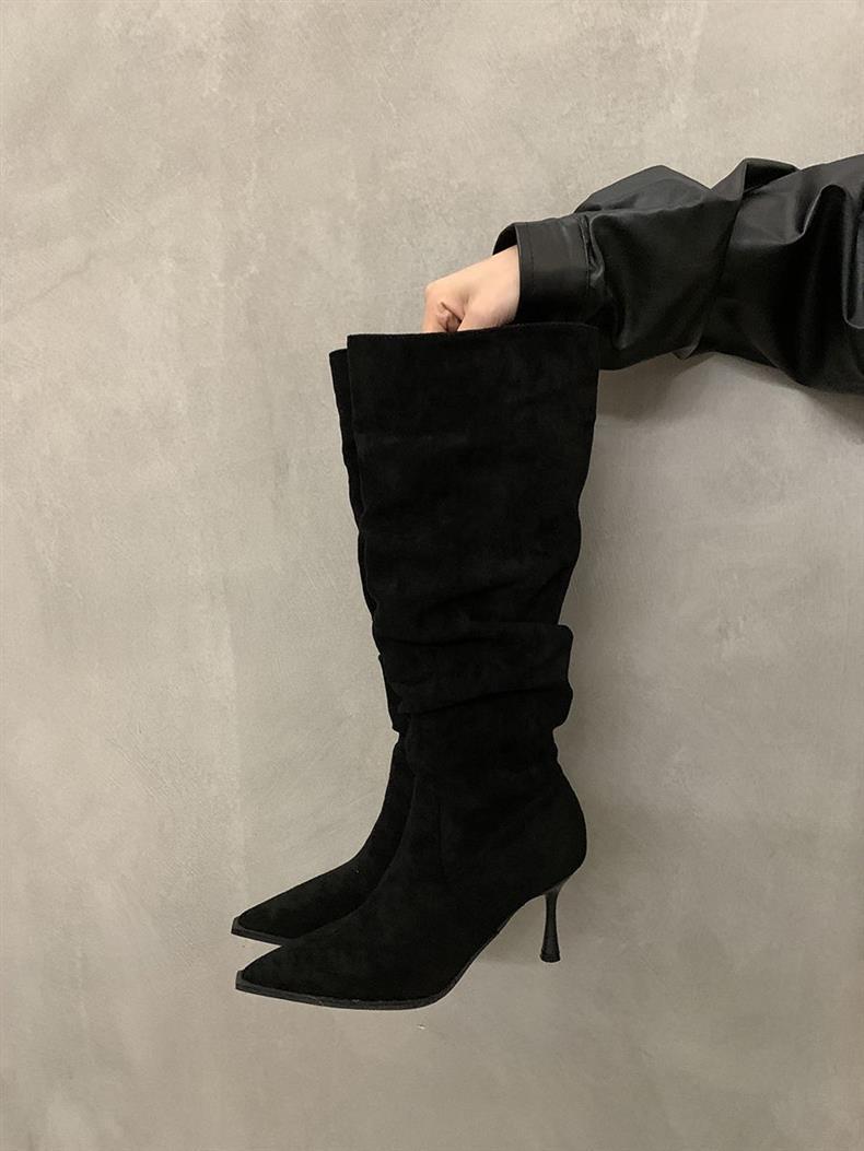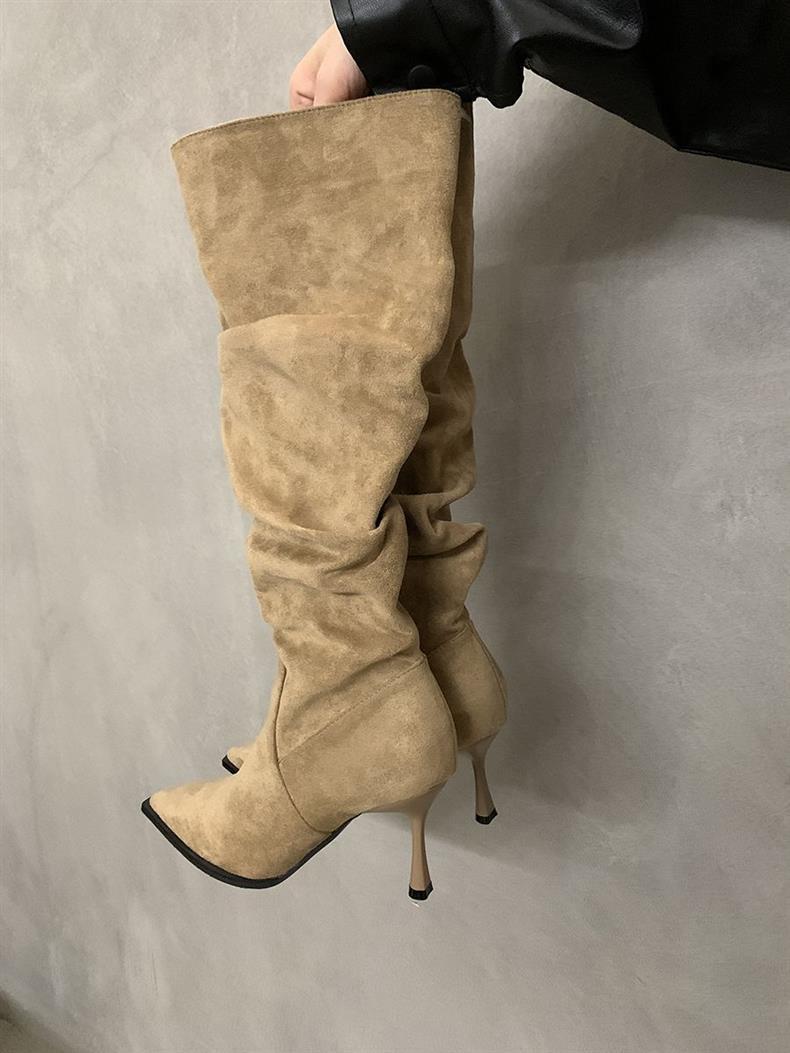 Zeyria Dökümlü Süet Diz Altı Çizme